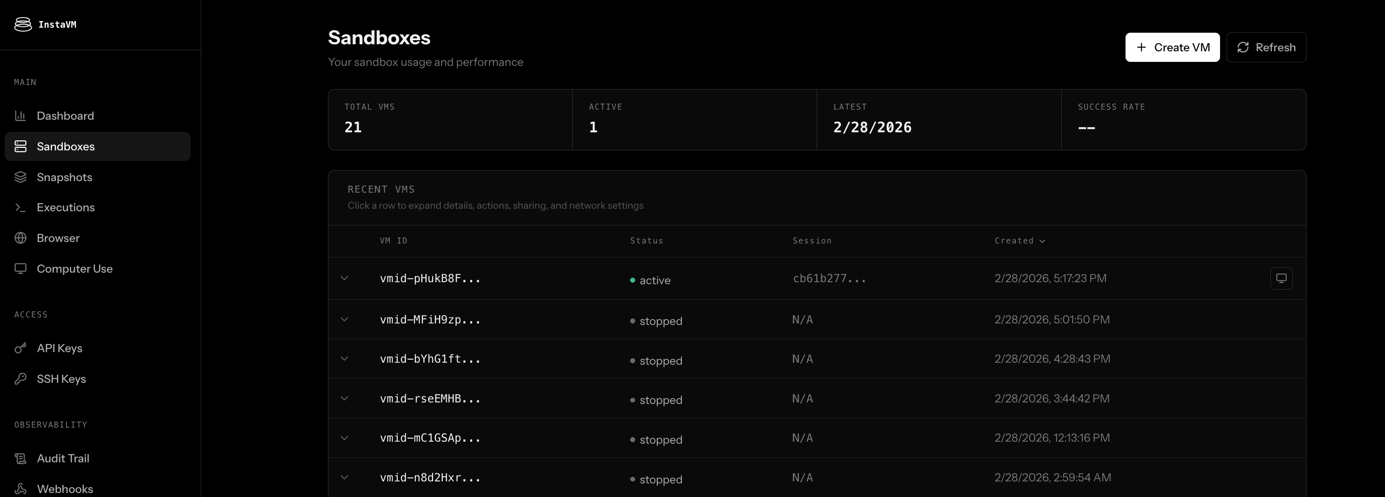 https://<share-id>.instavm.site/4) SSH into VM (first add your SSH key in the dashboard)